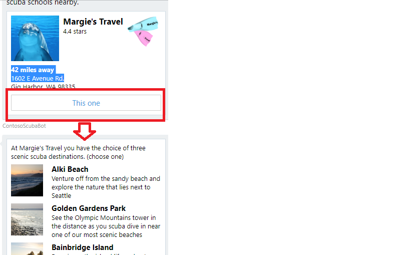 嗨,我正在做机器人,因为我有一个要求,比如当用户点击按钮时,我想在下一张卡中显示相关内容,如下所示。