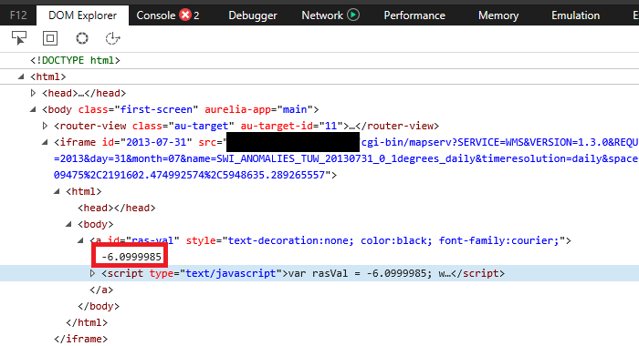 $('#ras-val', frame.contentDocument).text()As a fiddle,因为StackSnippet的空原始帧不允许我们访问内部帧.