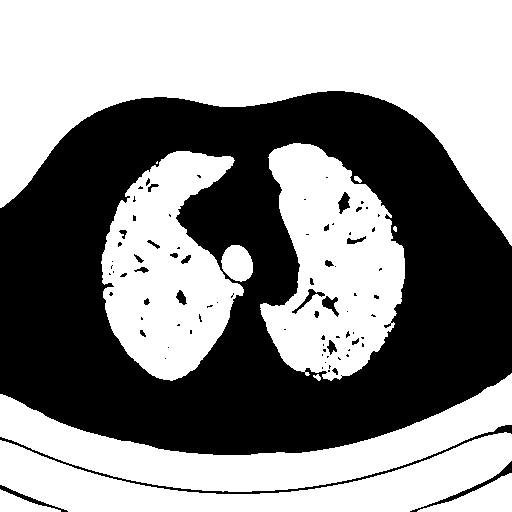 类似地,您可以使用floodFill()来查找哪些像素连接到图像的边缘,这意味着您可以使用它将肺中的空洞从阈值中放回。关于这个填洞过程的另一个例子,请看我的答案这里。