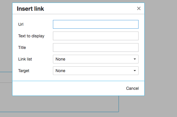 我使用TinyMCE作为我的应用程序的文本编辑器。但是,“链接”工具栏打开了一个我并不喜欢的模式:参见下面: