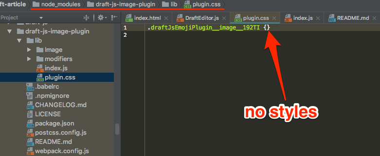 关于draft-js-image-plugin/lib/plugin.css中的样式。这看起来像是插件文档中的一个错误。我们可以在那里读到: