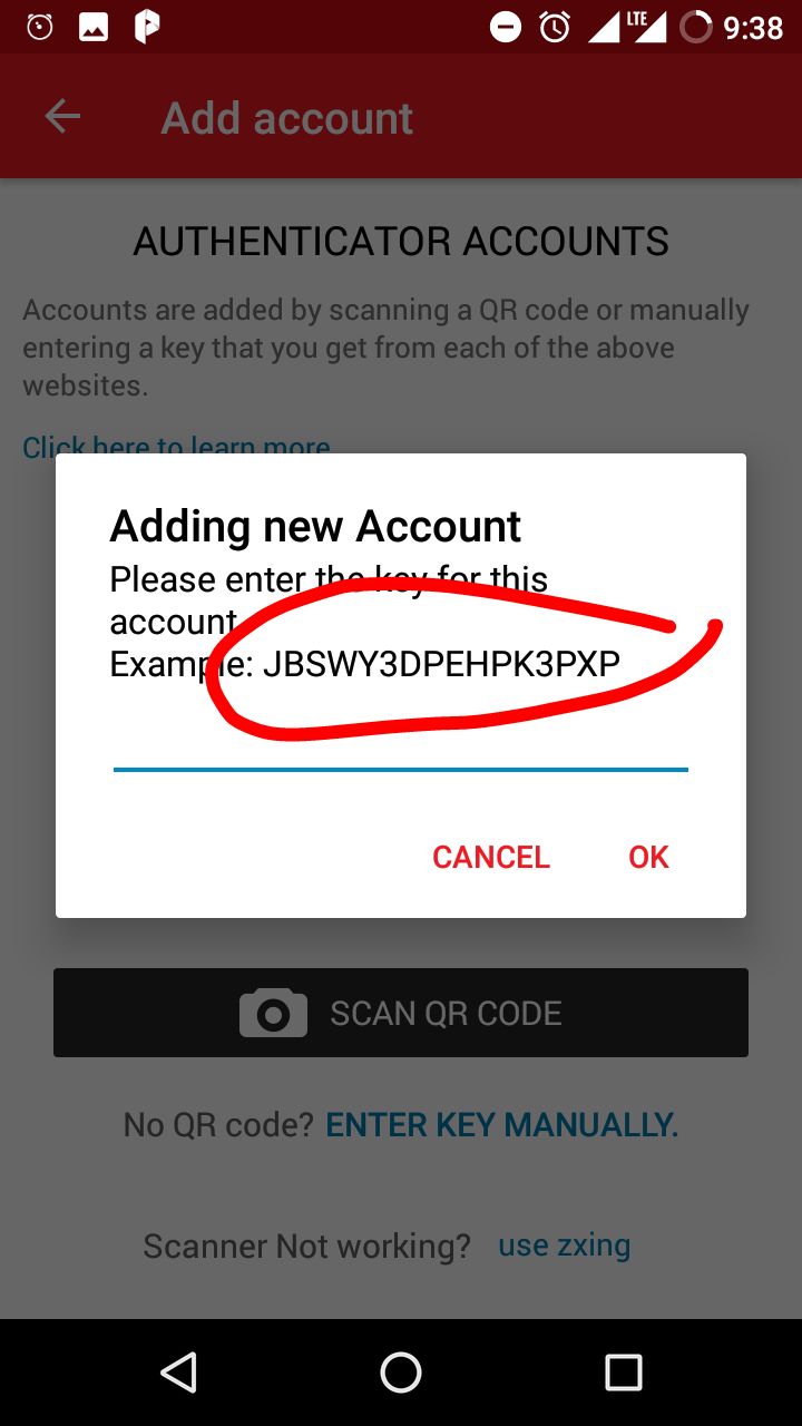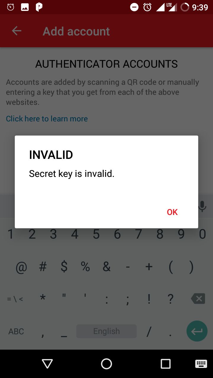 我们需要输入类似这样的秘密,但是我获得了数字秘密,如果我输入这个手动应用程序会显示错误,就像屏幕截图下面一样。