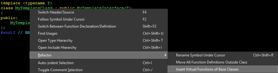class MyTemplateClass : public MyTemplateInterface<T>