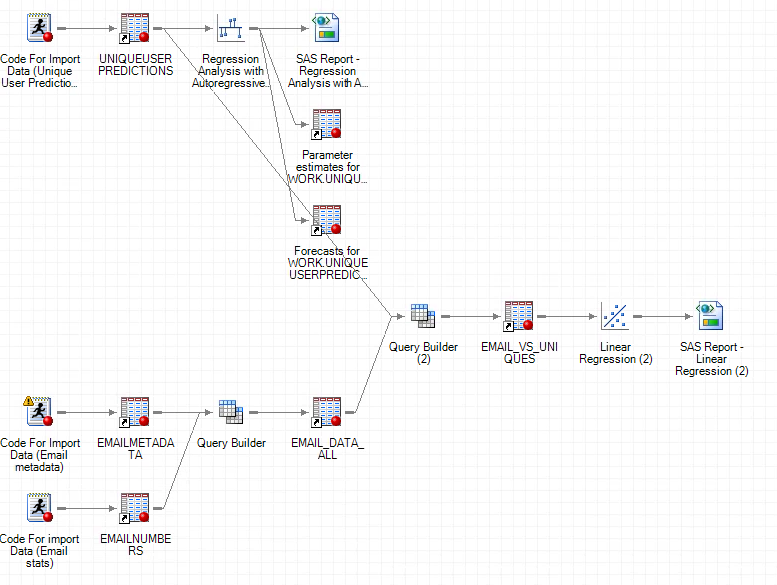 考虑到这种理解,在临时数据被清除的情况下,我正试图使流程流程工作。关闭Enterprise时警告我,该项目引用了临时数据,这些数据必须是我创建的表。这应该很好,数据在SAS服务器上,我编写了代码将数据导入SAS。