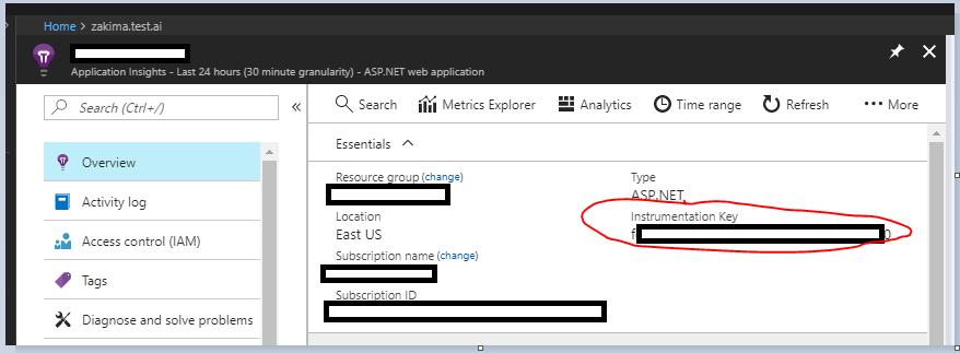 TelemetryConfiguration.Active.InstrumentationKey = "d87f25f7-ea56-43b8-88c1-eb0e9d3dc27f";