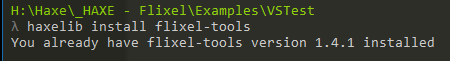 Flixel完全依赖于较早版本的OpenFL和Lime-Lime2.9.1,因此出现了错误。您可以通过运行以下两个命令来解决这个问题(回答“安装它?”(提示是):