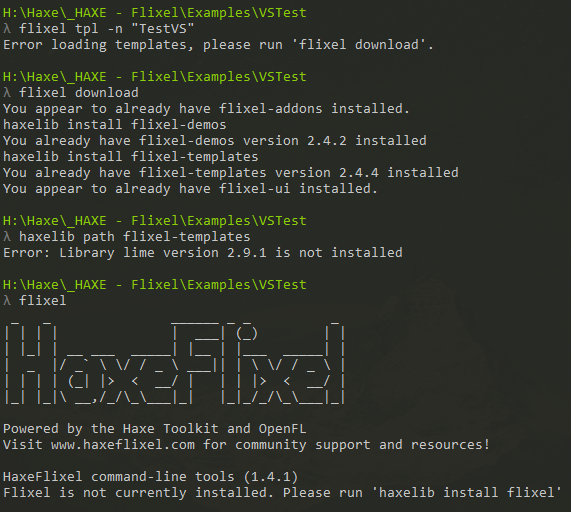我得到,Error loading templates, please run 'flixel download'.后,一个新的安装在windows个人电脑上。