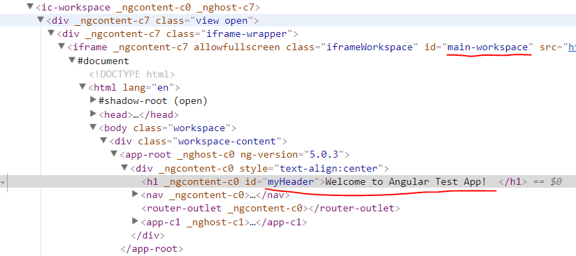 expect(element(by.id('myHeader')).getText()).toEqual('Welcome to Angular Test App! ');