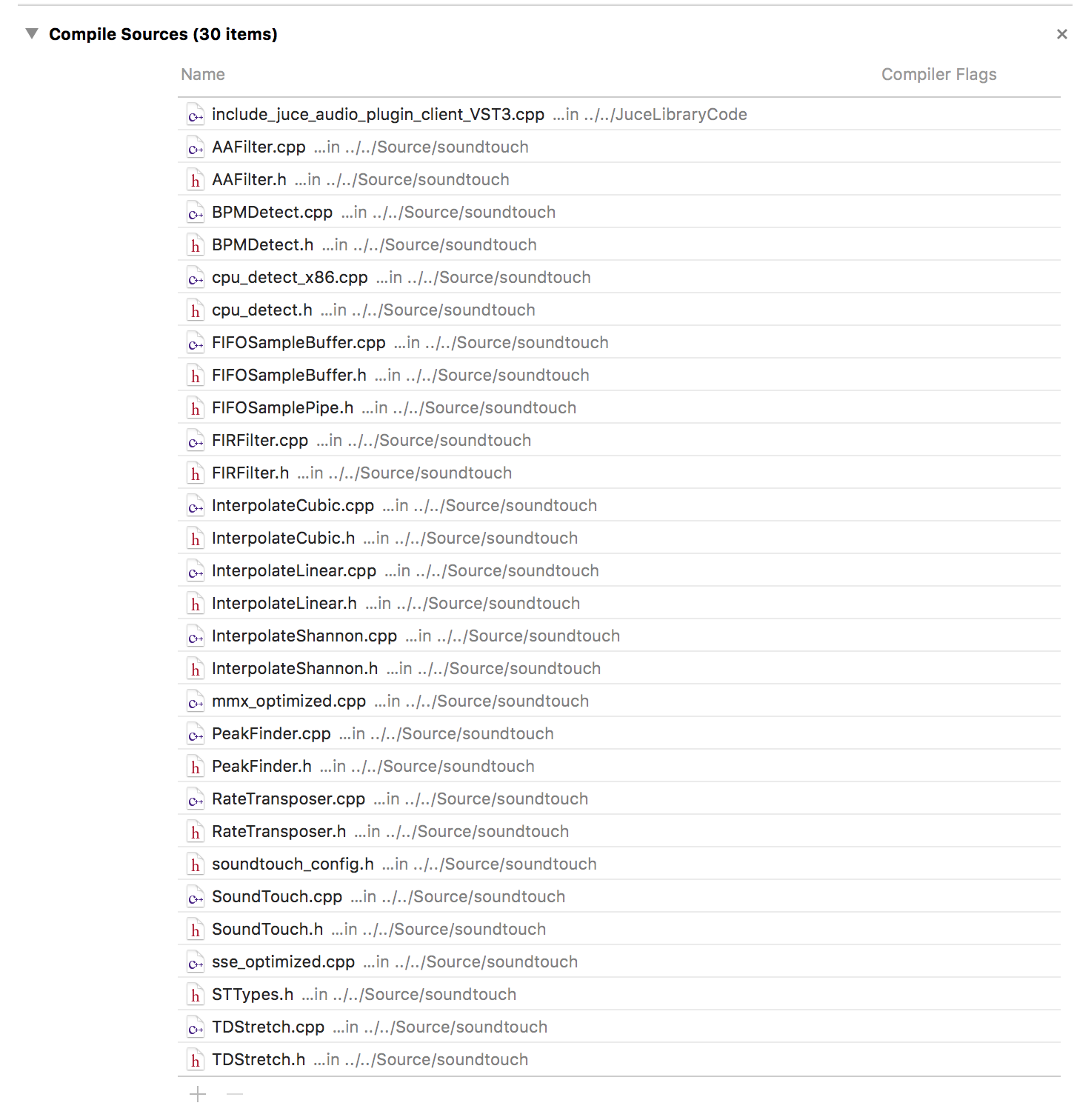 我将SoundTouch的基本文件复制到项目的“编译源代码”定义中。