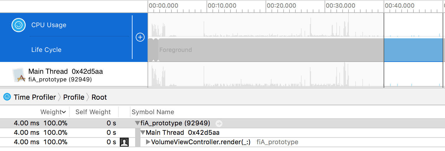 所以我现在就在这里问题似乎是CPU以某种方式超载了这42 kB的数据.递归地。我还用xcode的仪器中的分配器进行了测试。据我所知,没有内存泄漏的迹象(您可能已经注意到这对我来说是新的)。