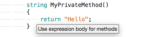 }我在“IDE0022”中找到了https://learn.microsoft.com/en-us/visualstudio/ide/editorconfig-code-style-settings-reference。这些警告似乎是由Visual (而不是由C#编译器或类似的东西)引发的。