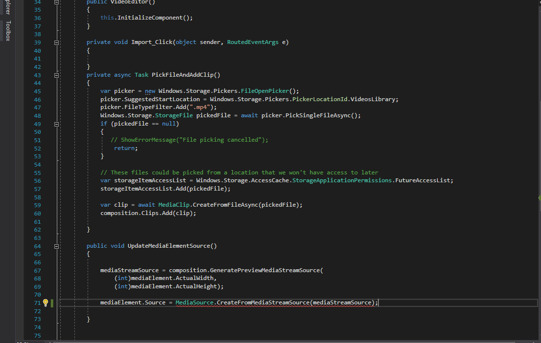 我使用MediaElement工具是因为MediaPlayerElement工具在我的vs17社区中不可用。我将构建绑定到这个应用程序,但遇到了一些错误。