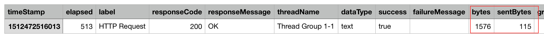 Save received bytes count您将进入保存的jtl文件列..,bytes,sentBytes..。