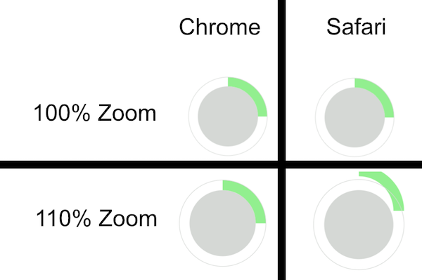 这把小提琴显示了一个由两个圆圈组成的图形,两个圆圈重叠在一起。当Safari用户增加浏览器中的缩放大小时,问题就很明显了: