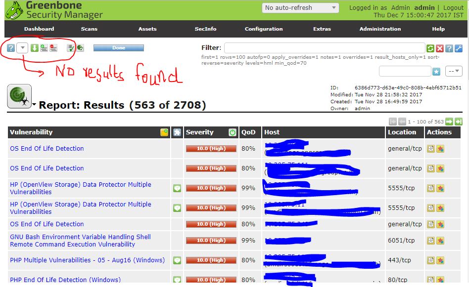 我已经扫描了我的网络并得到了结果。我可以查看扫描结果,但无法以任何格式(如PDF、XML等)下载报告。也没有选择该格式的选项。它显示,没有发现任何结果。