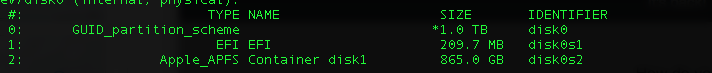 将APFS物理存储disk0s2从864,999,997,440字节增加到1,000,345,825,280字节