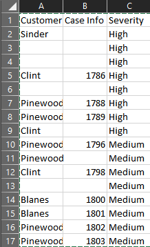 我无法得到一个函数,它将计算严重度=高和(Customer!=“OR Case Info!=”)