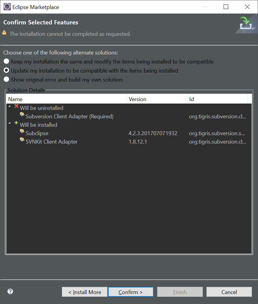 Software being installed: Subclipse 4.2.3.201707071932 (org.tigris.subversion.subclipse.feature.group 4.2.3.201707071932)