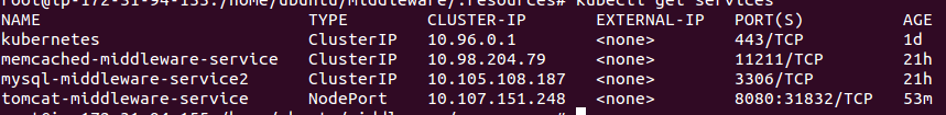 我使用kubectl在kubernetes上运行了两个服务。1. Tomcat 2. MYSQL