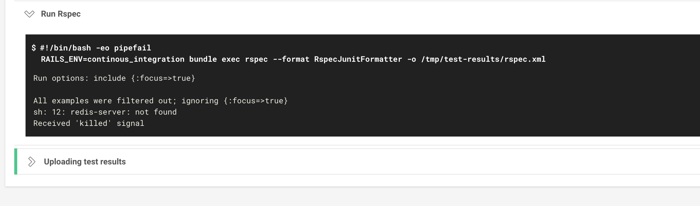 RAILS_ENV=continous_integration bundle exec rspec --format RspecJunitFormatter -o /tmp/test-results/rspec.xml