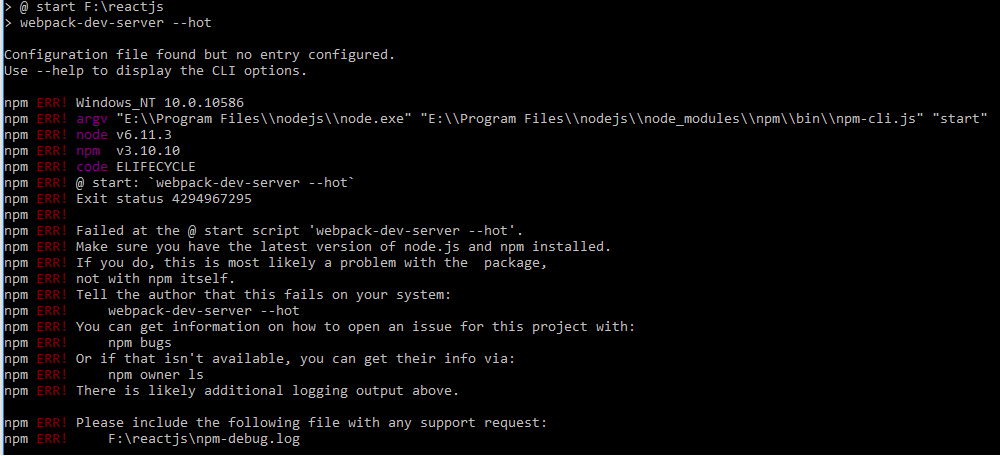 14详细堆栈错误:@ start:webpack-dev-server --hot