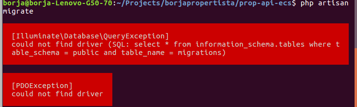 我了解到现在已经安装了pgsql驱动程序,但是在运行php artisan迁移时,我仍然可以得到