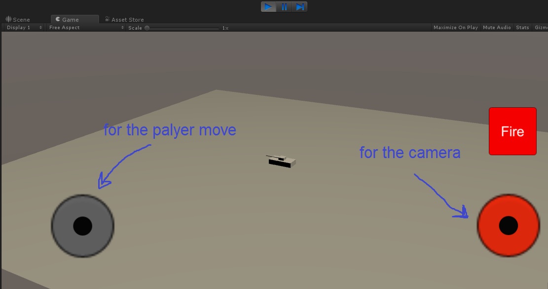 在统一5中实现两个虚拟游戏有两个问题:一个用于玩家的移动(灰色),另一个用于照相机(橙色),请参见下面的屏幕截图:
