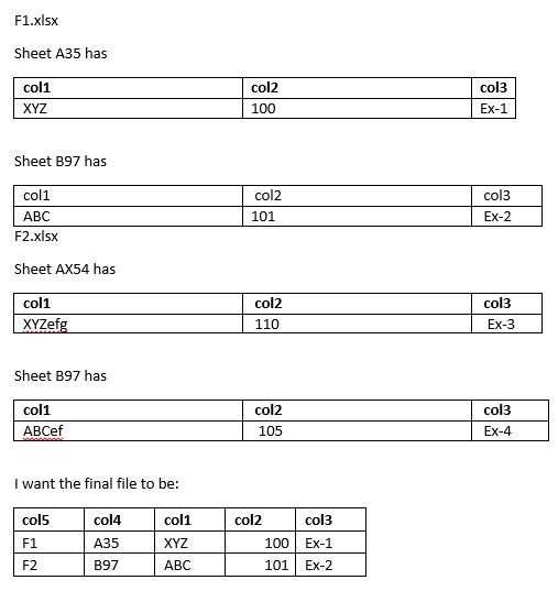 我需要创建一个合并的excel文件,它将工作表名作为工作表中每一行的新属性。