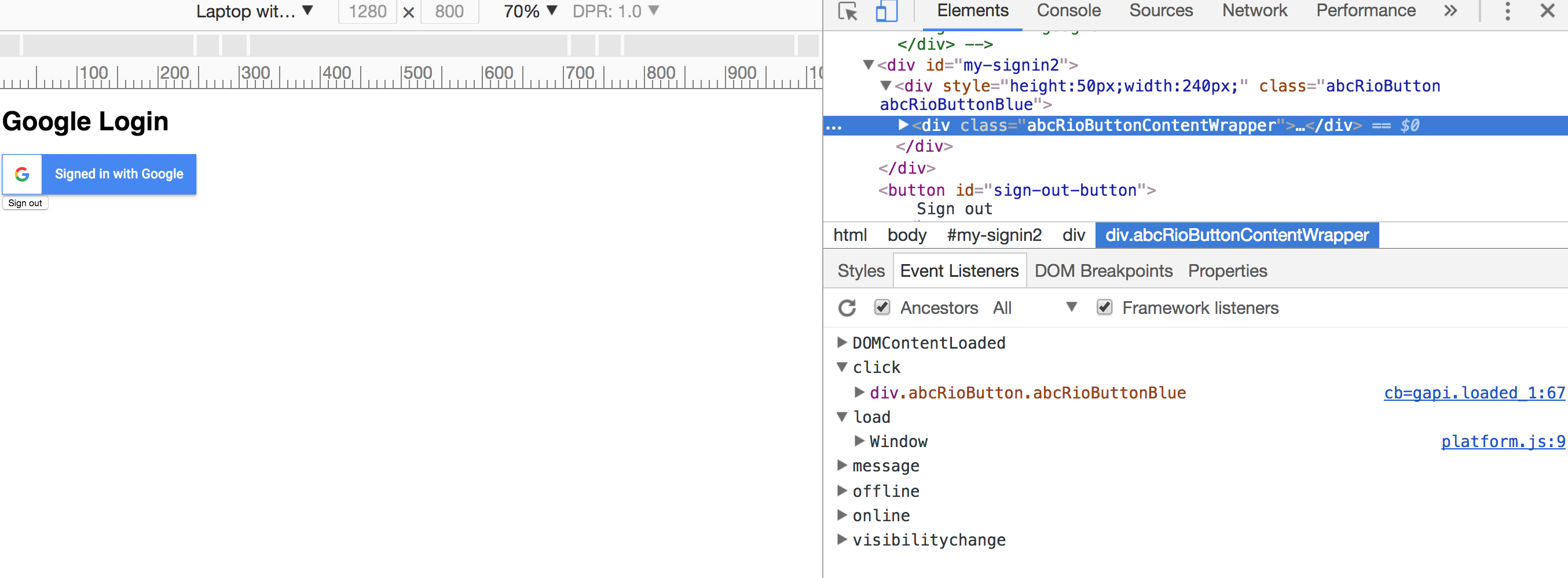 我实现了Google登录,并使用他们的signin2.render()方法来呈现一个按钮以供登录。