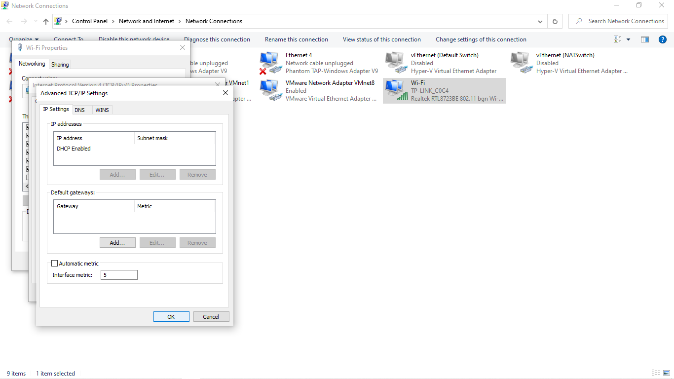 1:首先您必须增加WiFi适配器优先级(接口度量)