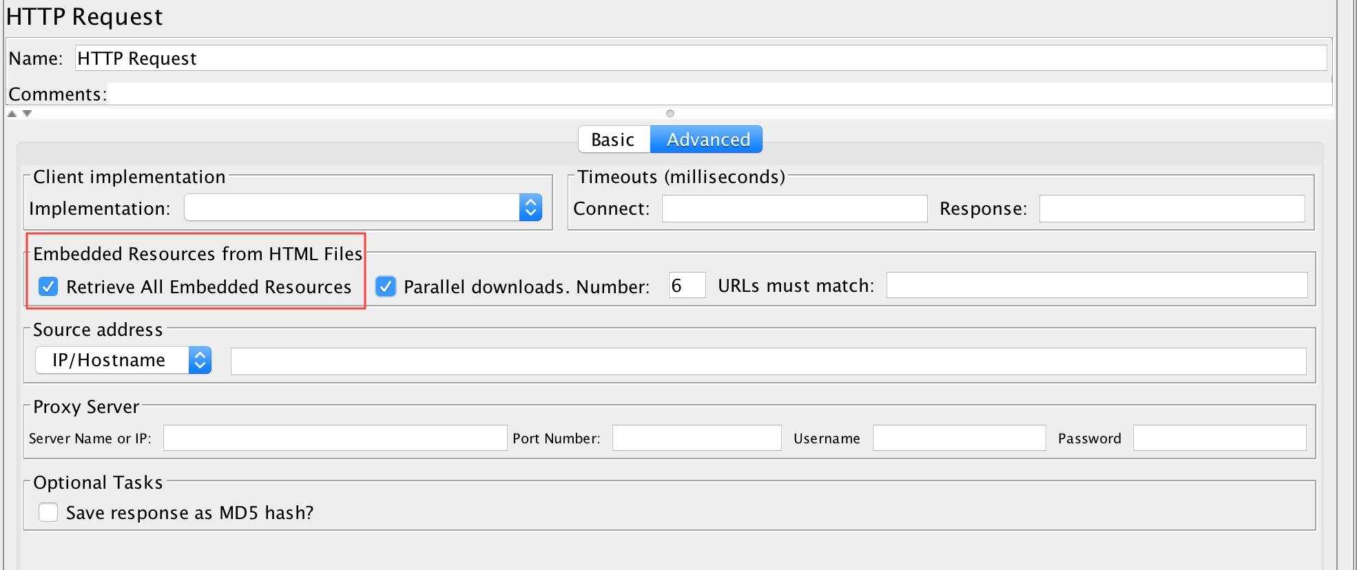 如果未选中此框,JMeter将只返回主要内容,但不会处理任何所谓的“嵌入式资源”:图像、字体、脚本、网页引用的样式。
