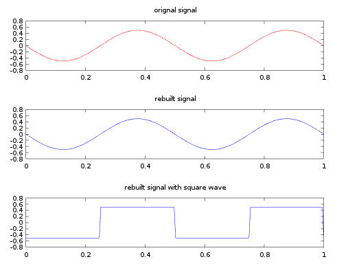 title('rebuilt signal with square wave')