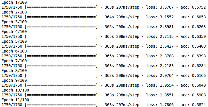 在训练CNN模型时,是否有可能在每一个时期减少损失,降低准确度?我在训练的时候得到了下面的结果。