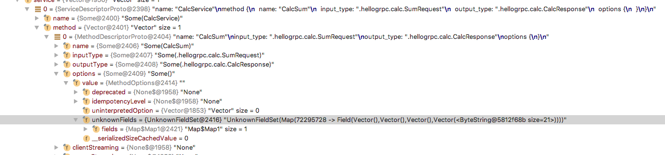 I inspect CalcServiceProto.javaDescriptor in intellj idea: