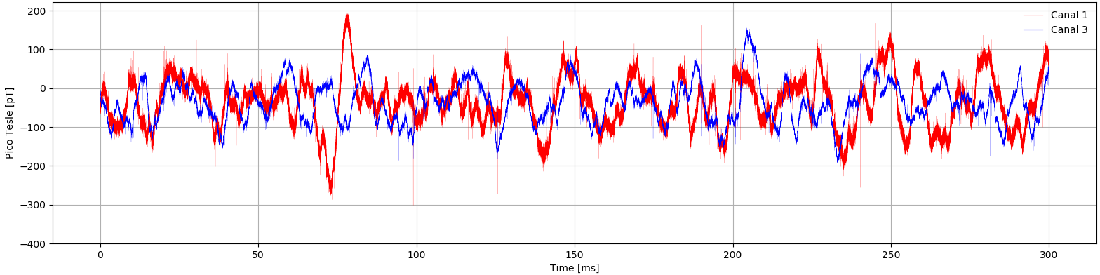 plt.grid()多亏了这一点,我得到的结果是,我所有的测量值(这里是大气放电)都是正值(pT - picoTesla)。第一幅图显示运河1,第二幅图显示运河3,第三幅图显示运河(渠道)组合。