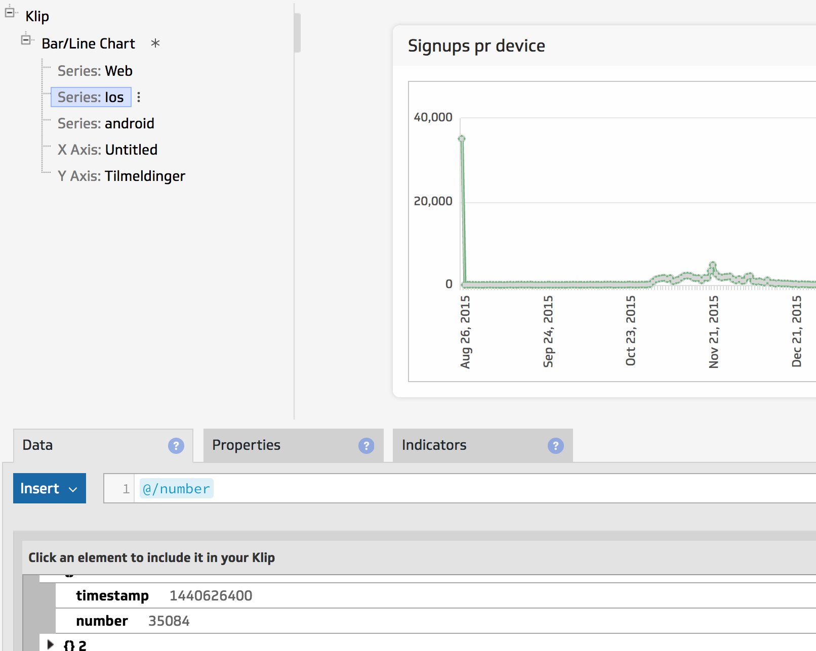 CUMULATIVE(@/number)这将累积地将您的每日数据从第一个记录添加到最后一个JSON数据源。