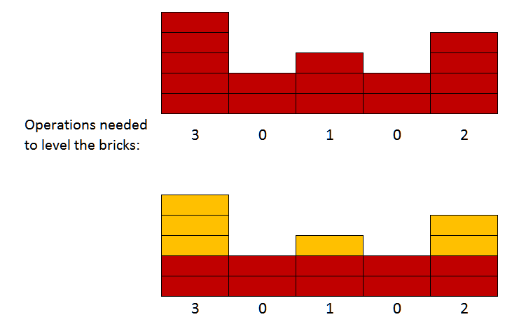 为了平平所有的砖柱,你总是挑出最高的一栏,每次移除一块砖。