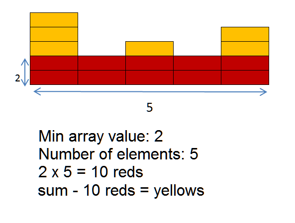 2 | 2, 3 | 5, 5, 5链接解释说,我们必须使用公式minOperation = sum - (n * small)来得到答案,其中和是数组中所有元素的总和,n是数组中的元素数,小元素是数组中最小的元素。