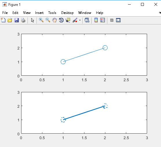 plot([1 2],[1 2],'o-','markersize',12,'linewidth',2)