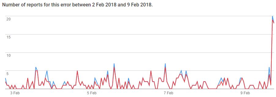 at java.lang.Thread.run (Thread.java:818)这是我无法控制的吗?上面的崩溃报告中没有一个与我的项目中的任何方法或类直接相关,所以我不知道该在哪里查找。此外,我连续几个星期都没有看到这些错误,然后在几个小时内突然出现了一个峰值,然后又回到了零: