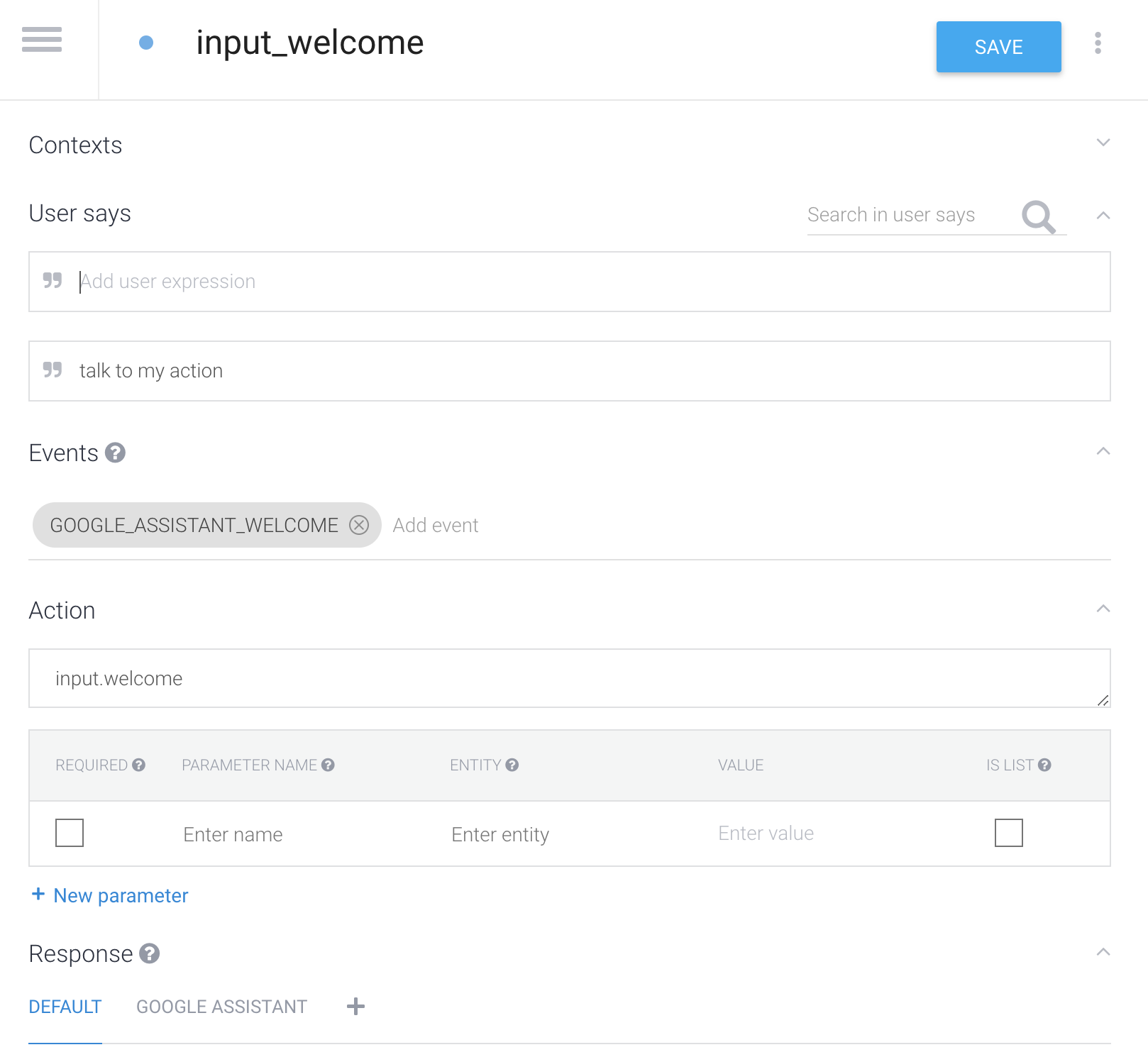 正如您在评论中所推测的那样,您还可以将“欢迎意图”更改为您已经测试过的其他意图之一。这个特别的欢迎意图没有什么特别之处--它只是在默认情况下为您创建的。