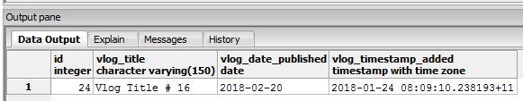 下面是数据库中的屏幕截图,其中引用了显示给用户的标记,尽管vlog尚未显示给用户,但是存储在数据库中,等待根据vlog_date_published > now自动发布。
