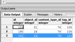 taggit_taggeditem表(id=191 - FK's 24 & 123):