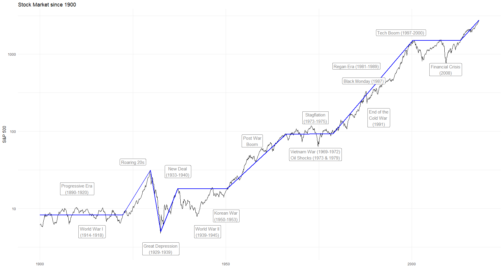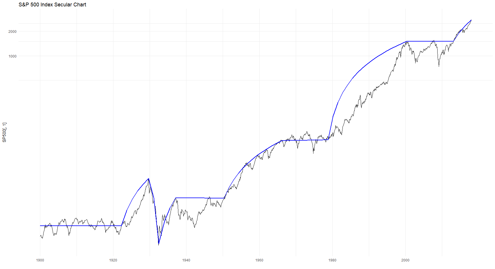 好的,所以我试图(并且失败)复制一个显示标准普尔500指数长期市场趋势的情节。