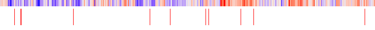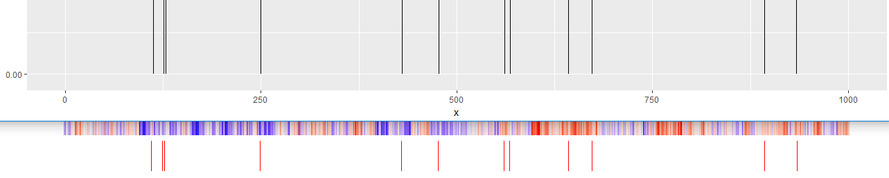 因此,正在绘制的不是线条,而是填充的矩形,当数据集中有太多列时,就会出现一个分辨率问题,它会阻止某些带注释的填充依赖于正在查看注释的缩放而可见。在查看热图输出的PDF时也是如此。作为矢量格式,缩放级别会影响大比例尺绘制的内容,并显示在较低缩放级别上不显示的细节。所有12“行”(实际上是充满长方形的)都存在于此: