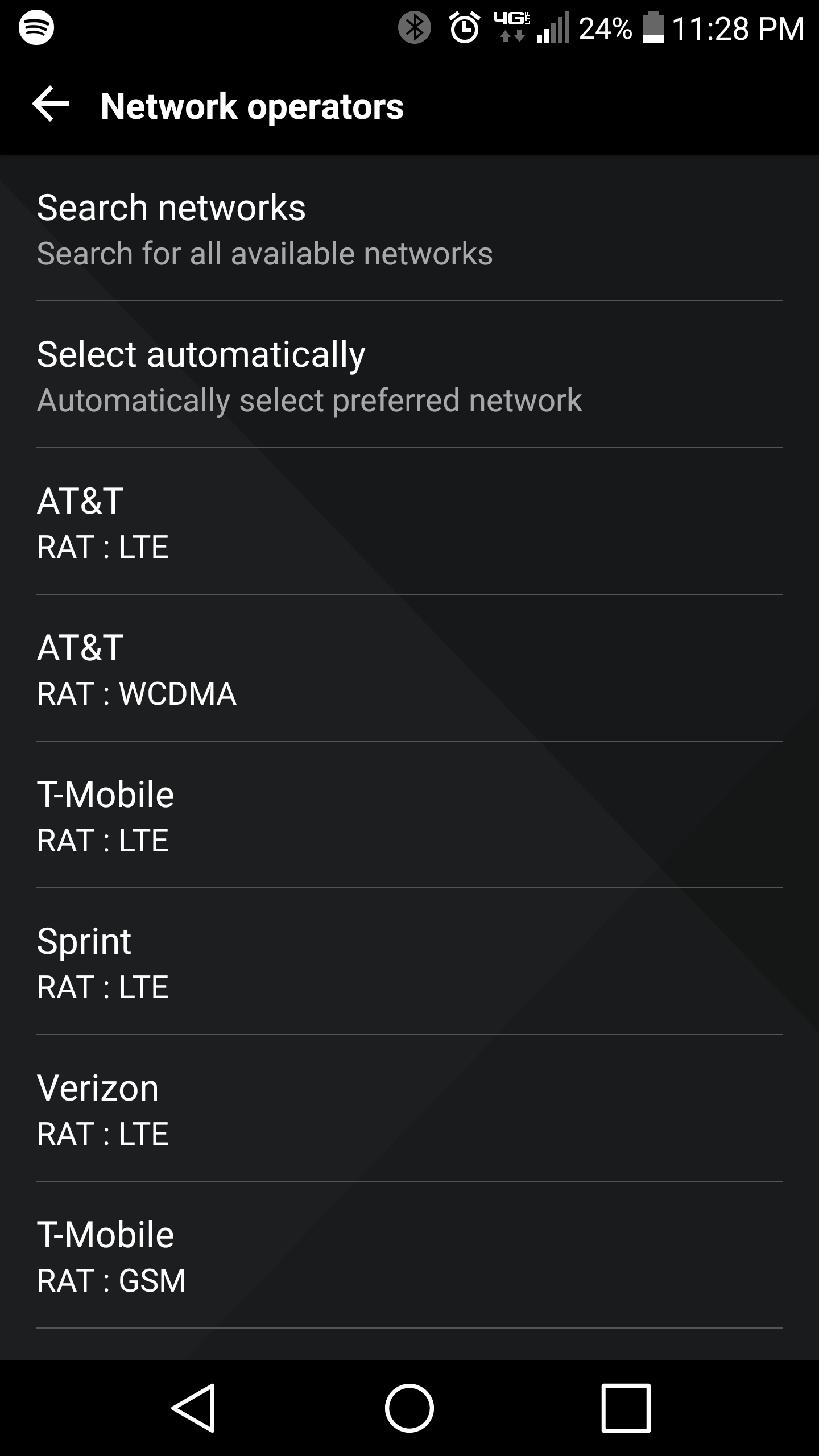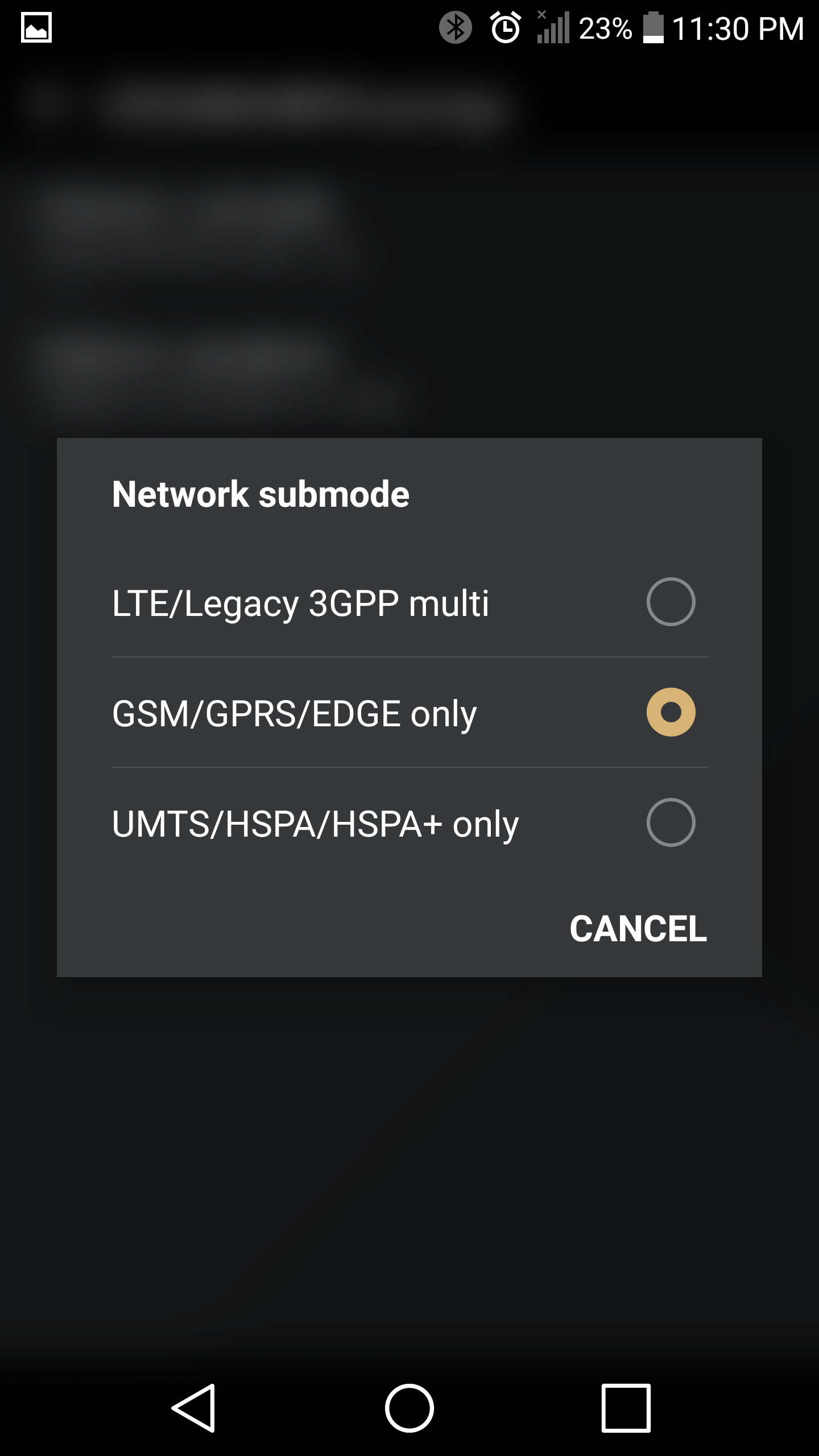 这是一个网络子模式列表。我的手机通常是LTE数据的首选选项。我的GSM芯片使用的是第二种选择,显然是GSM。我可能能够破解一个较慢的LTE连接,因为我仍然支持的乐队,AT&T的LTE网络提供。我只需要看看破解固件是多么的可行。