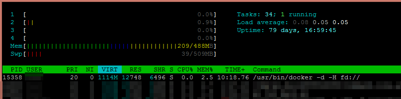 我的理解是,在本例中,docker的守护进程从操作系统中请求了1114 my的内存,为其分配了一段虚拟地址空间,但是物理内存直到进程实际需要时才会使用,这很好。