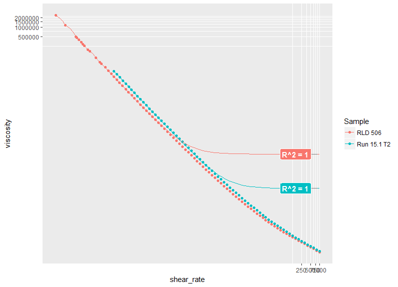 selected_data <- structure(list(shear_rate = c(1000, 794.329, 630.957, 501.187, 398.107, 316.228, 251.189, 199.527, 158.488, 125.893, 100, 79.4327, 63.0956, 50.1188, 39.8107, 31.6228, 25.1188, 19.9526, 15.8489, 12.5893, 10, 7.94327, 6.30959, 5.01187, 3.98106, 3.16227, 2.51188, 1.99526, 1.58489, 1.25892, 0.999992, 0.794326, 0.630961, 0.501198, 0.39811, 0.31623, 0.251185, 0.199522, 0.158491, 0.125895, 0.0999949, 0.0794332, 0.0630955, 0.0501237, 0.0398085, 0.0316226, 0.0251186, 0.0199599, 0.0158465, 0.0125871, 0.00999673, 0.00794292, 0.00630626, 0.0050086, 0.00398398, 0.00316298, 0.00250931, 0.00199656, 0.0015839, 0.0012584, 0.000999712, 0.000792728, 0.00063262, 0.000508155, 0.000395346, 0.000317991, 0.000249344, 0.000196793, 0.000160254, 0.000127184, 0.000104187, 8.23117e-05, 6.47387e-05, 4.92171e-05, 4.36566e-05, 3.17533e-05, 1.73707e-05, 1.96217e-05, 7.36872e-06, 1.29909e-05, 1.1677e-05, 1.02765e-05, 8.38507e-06, 7.018e-06, 2.97303e-06, 1.43835e-06, 6.66051e-06), viscosity = c(0.078019, 0.0871012, 0.0978244, 0.110653, 0.125792, 0.142472, 0.160574, 0.180504, 0.202741, 0.228238, 0.257929, 0.293168, 0.334648, 0.383216, 0.440372, 0.508067, 0.588533, 0.684139, 0.798329, 0.934592, 1.09783, 1.29358, 1.52916, 1.81312, 2.15566, 2.57134, 3.07472, 3.68667, 4.43435, 5.34438, 6.45903, 7.82502, 9.50057, 11.5573, 14.0901,17.2101, 21.056, 25.8055, 31.6732, 38.9193, 47.895, 58.9914,72.7054, 89.6858, 110.719, 136.708, 168.881, 208.623, 258.156, 319.473, 395.938, 490.966, 610.17, 759.098, 944.226, 1177.97, 1472.51, 1837.24, 2301.57, 2880.84, 3609.73, 4529.95, 5655.8, 7014.35, 8985.18, 11142.5, 14172.5, 17910.1, 21937.4, 27576.4, 33589.4, 42421.1, 53821.7, 70652.6, 79480.7, 109057, 199001, 175881, 467589, 264795, 294139, 333755, 408477, 487371, 1149050, 2372100, 511717),