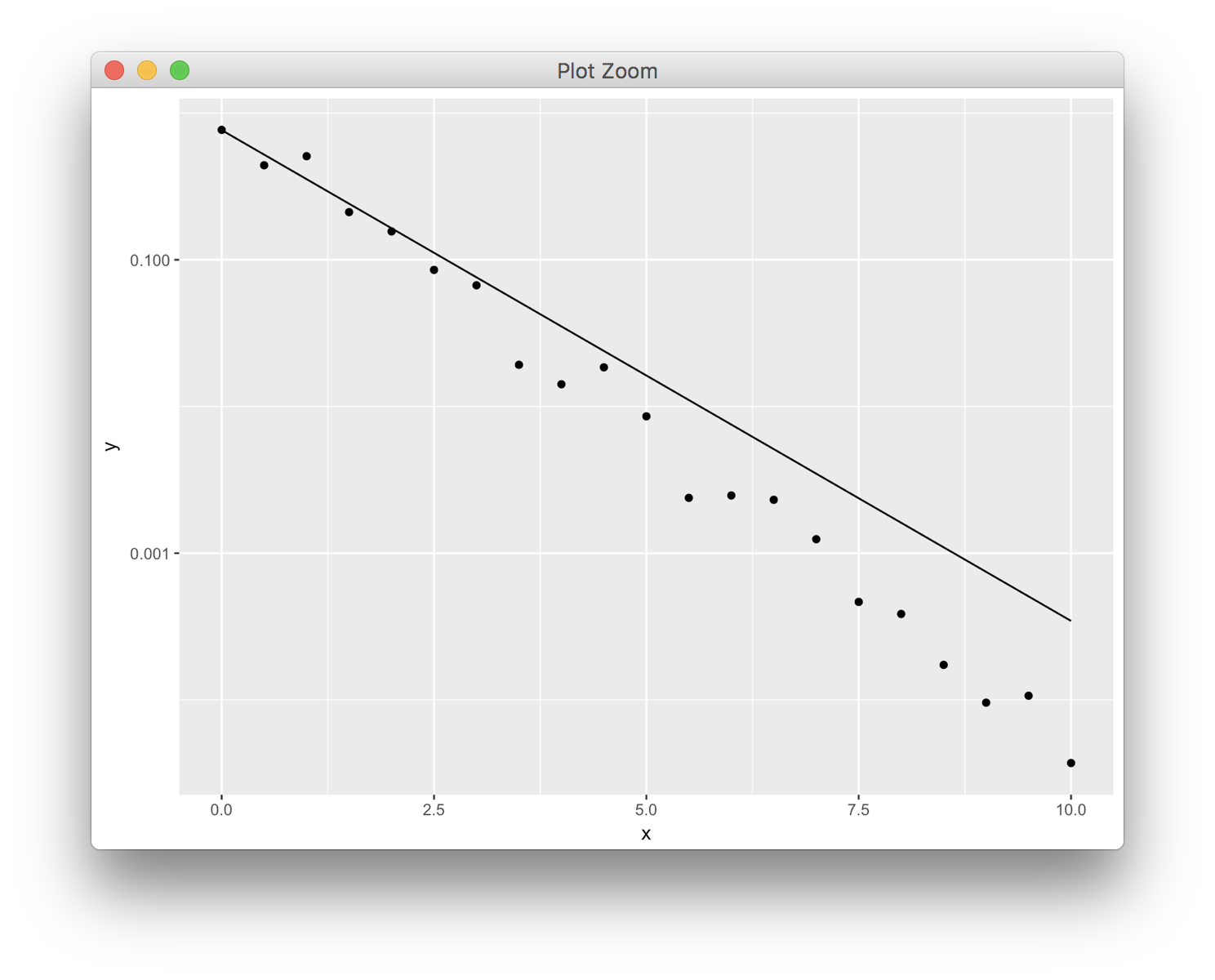 geom_line(data = data.frame(x = xpred, y = ypred)) + scale_y_log10()