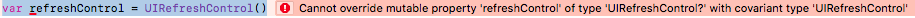 无法覆盖“refreshControl”类型的可变属性“UIRefreshControl?”具有协变类型'UIRefreshControl‘